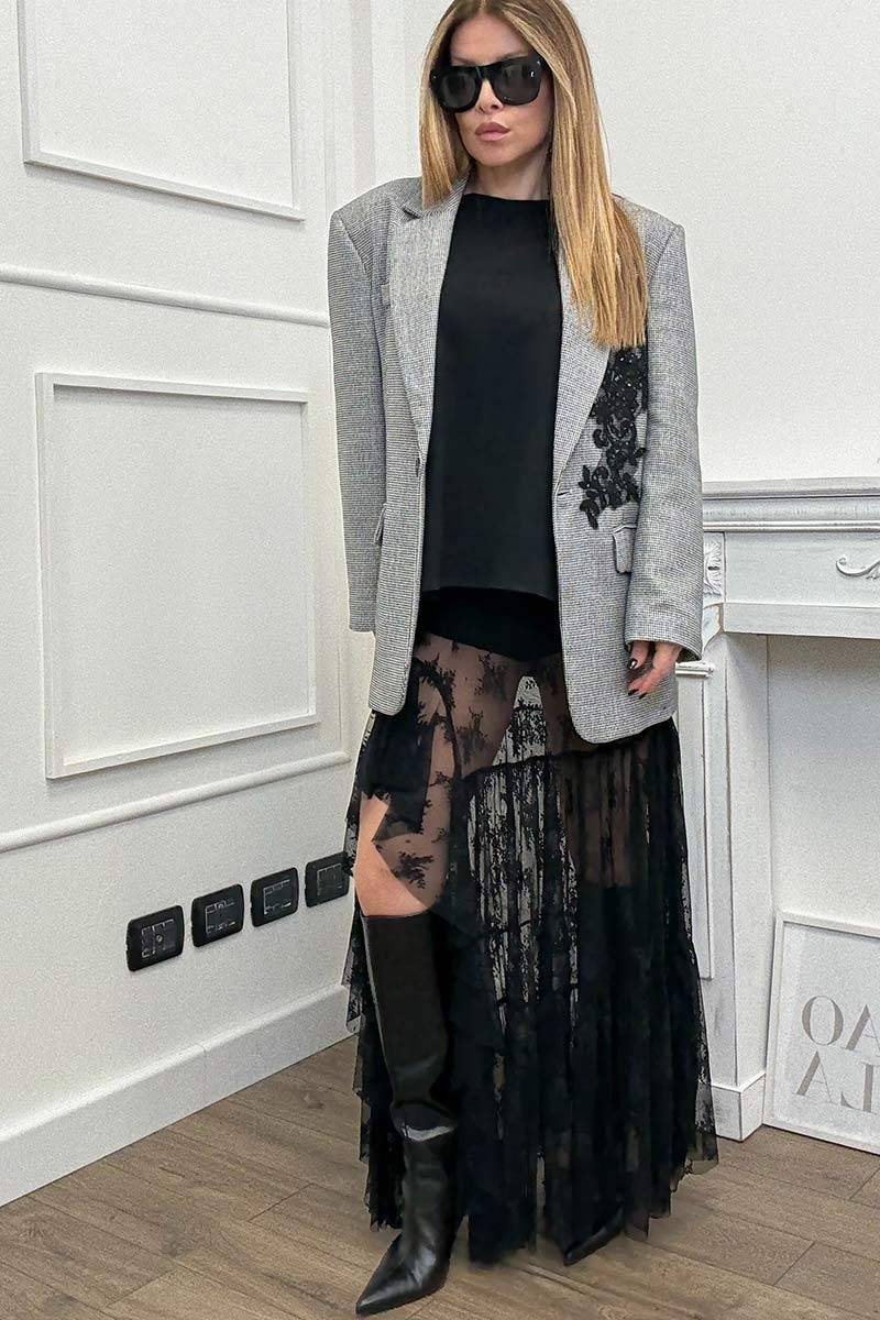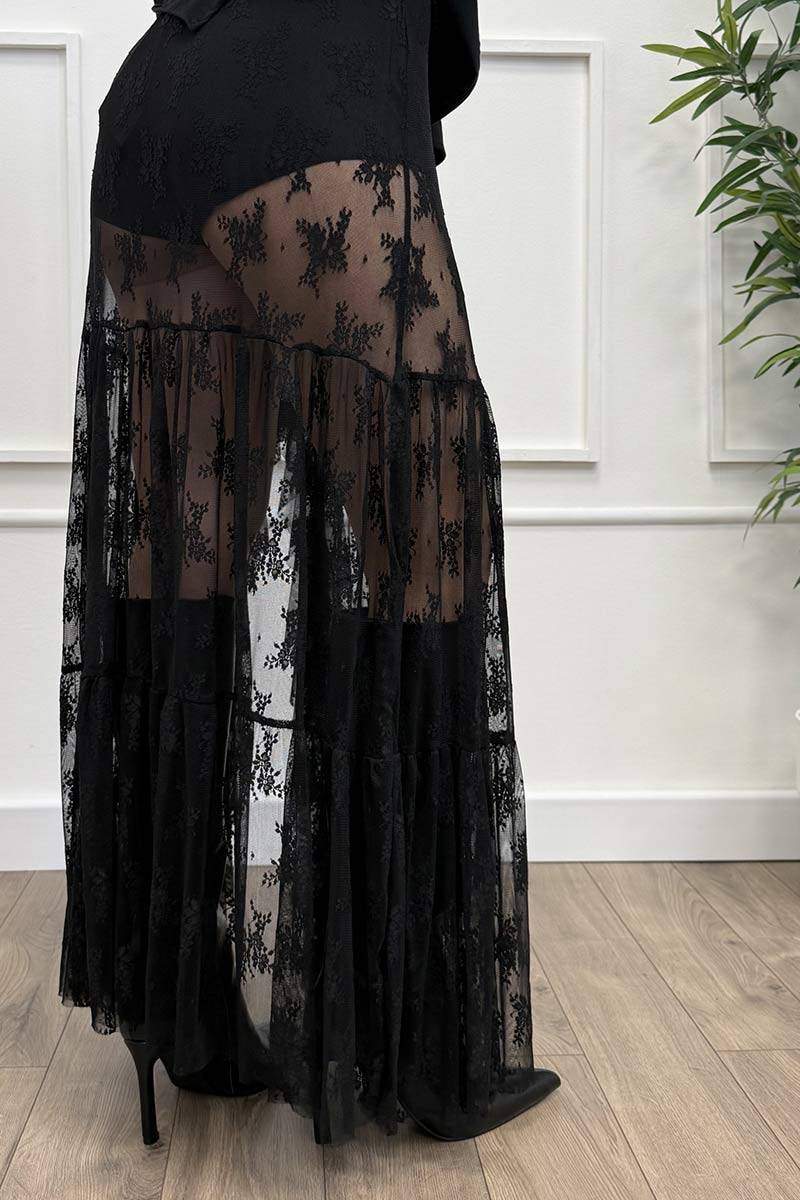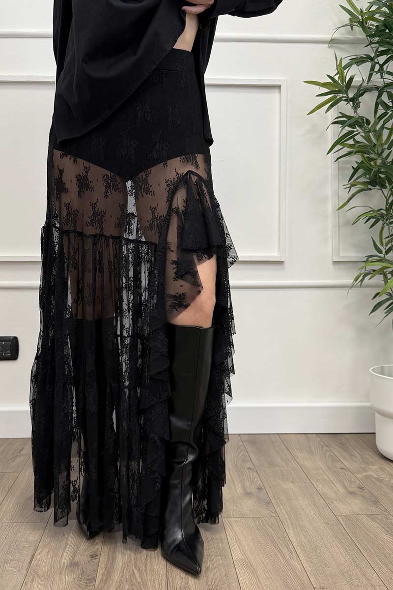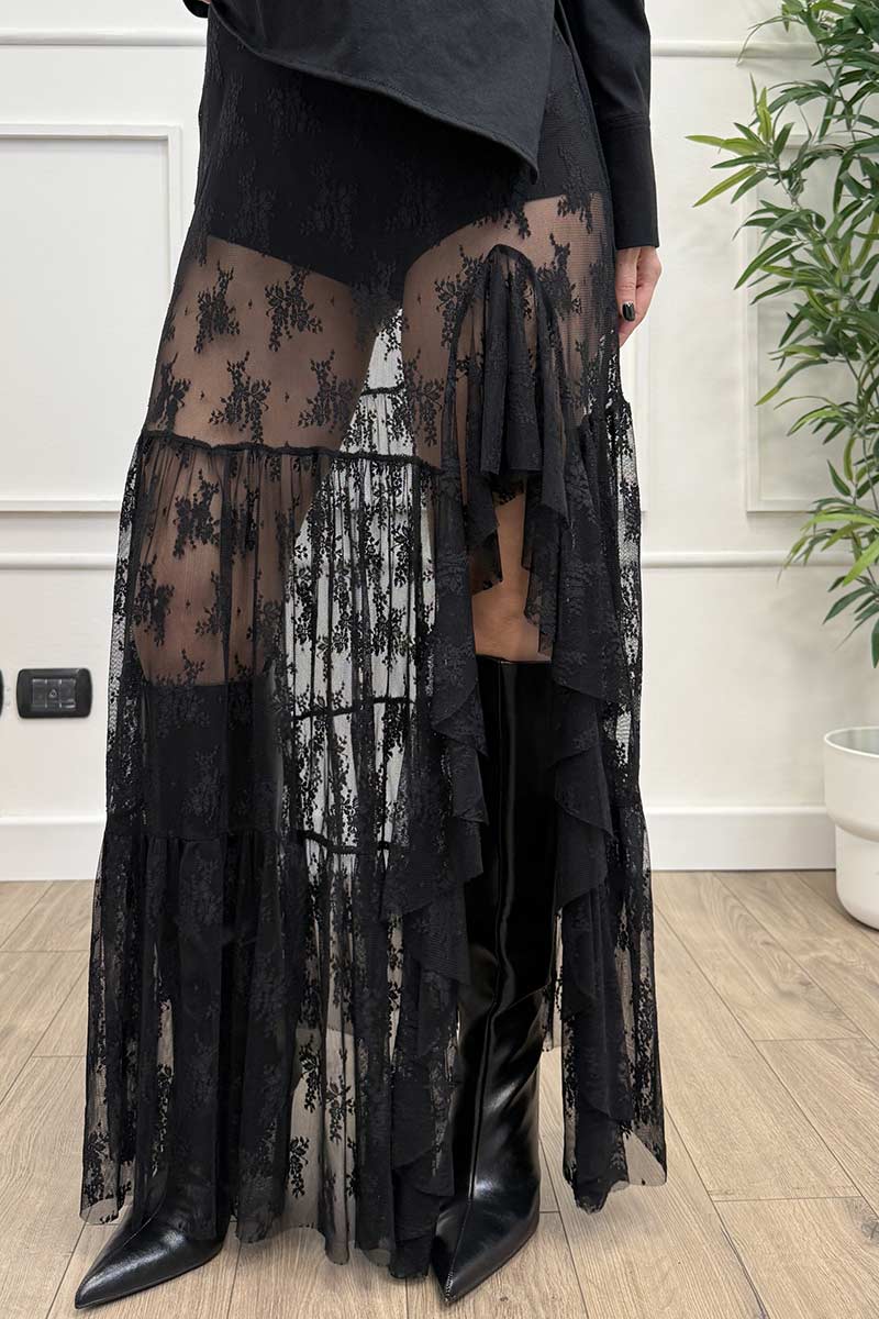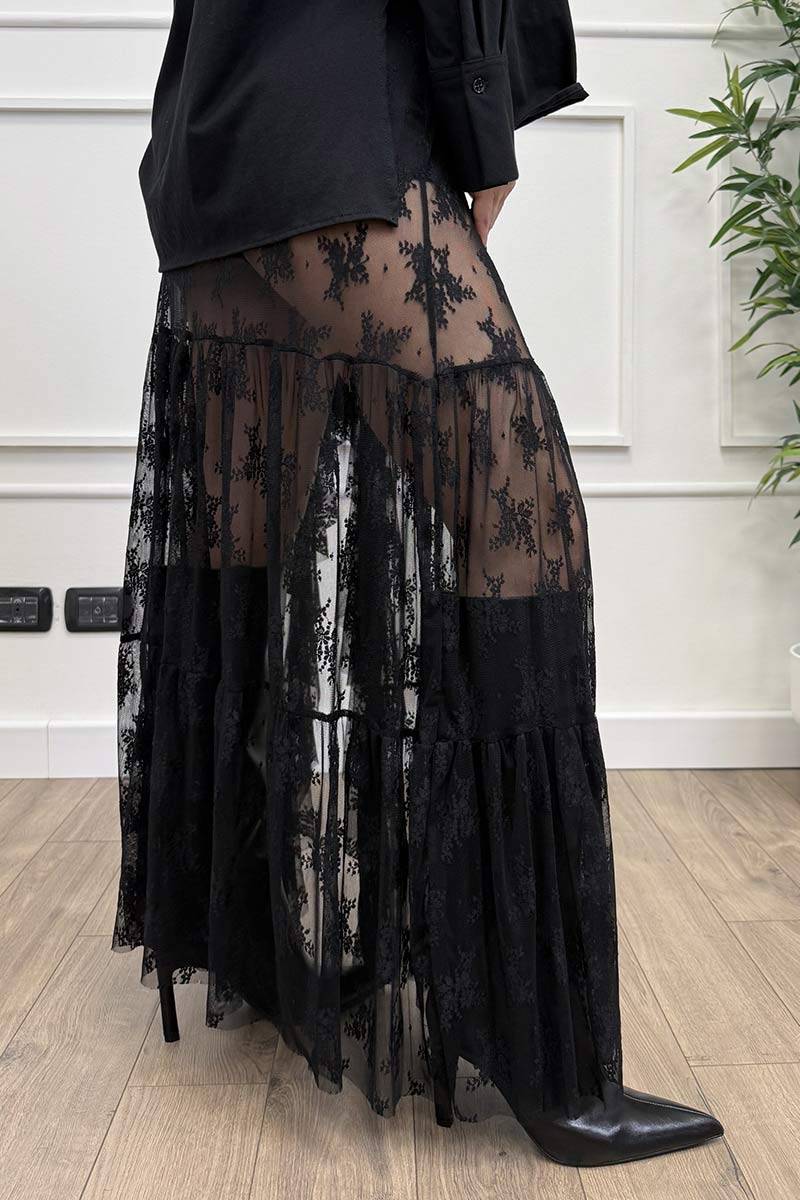 HaveOne Gonna Lunga Coulotte Pizzo Nero
