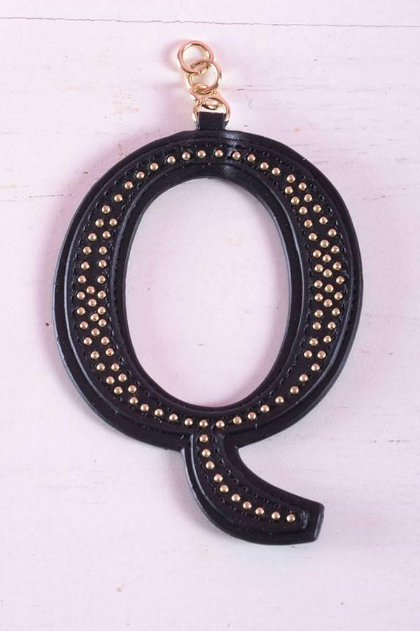 Lettera in ecopelle con micro borchiette finitura oro di Gio Cellini. Anellini dorati . Lettera da inserire nel portachiavi in metallo venduto separatamente.