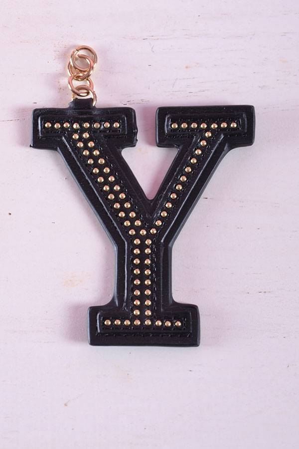 Lettera in ecopelle con micro borchiette finitura oro di Gio Cellini. Anellini dorati . Lettera da inserire nel portachiavi in metallo venduto separatamente.